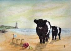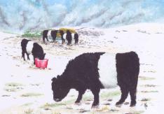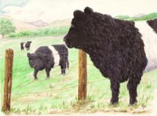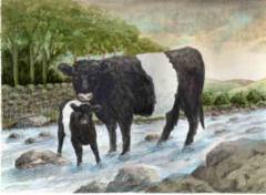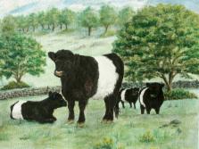 Belted Galloway Cattle are native to Galloway in the South West of Scotland but can now be found all over the world. The mainly black [some are red and some are dun colour (beige)] cattle are clearly distinguished by the white band around their middle and can be seen around Kirkcudbright and, indeed, all over the world.